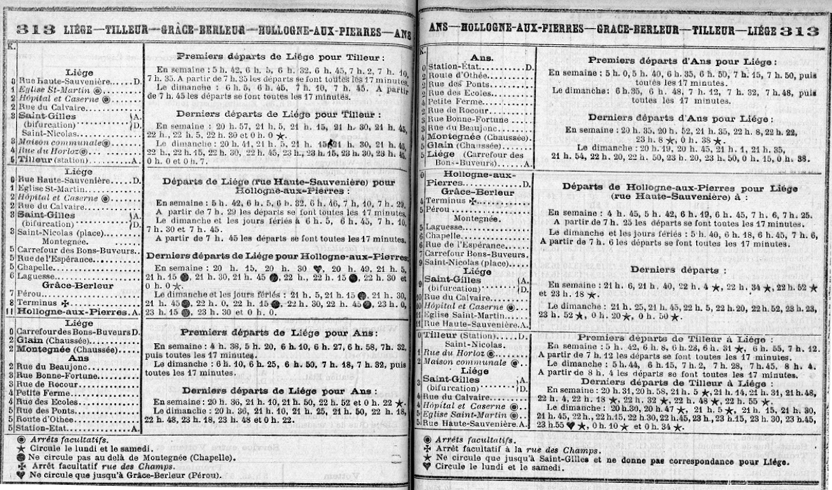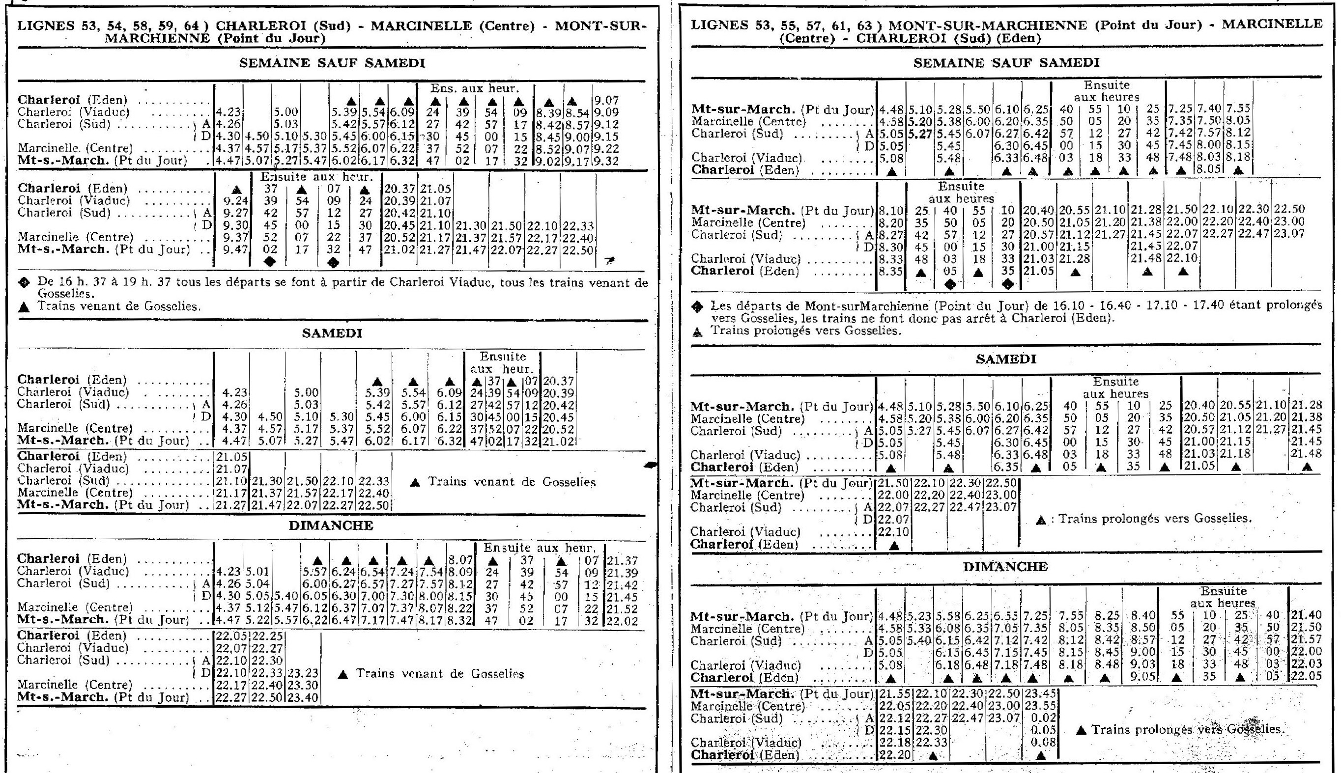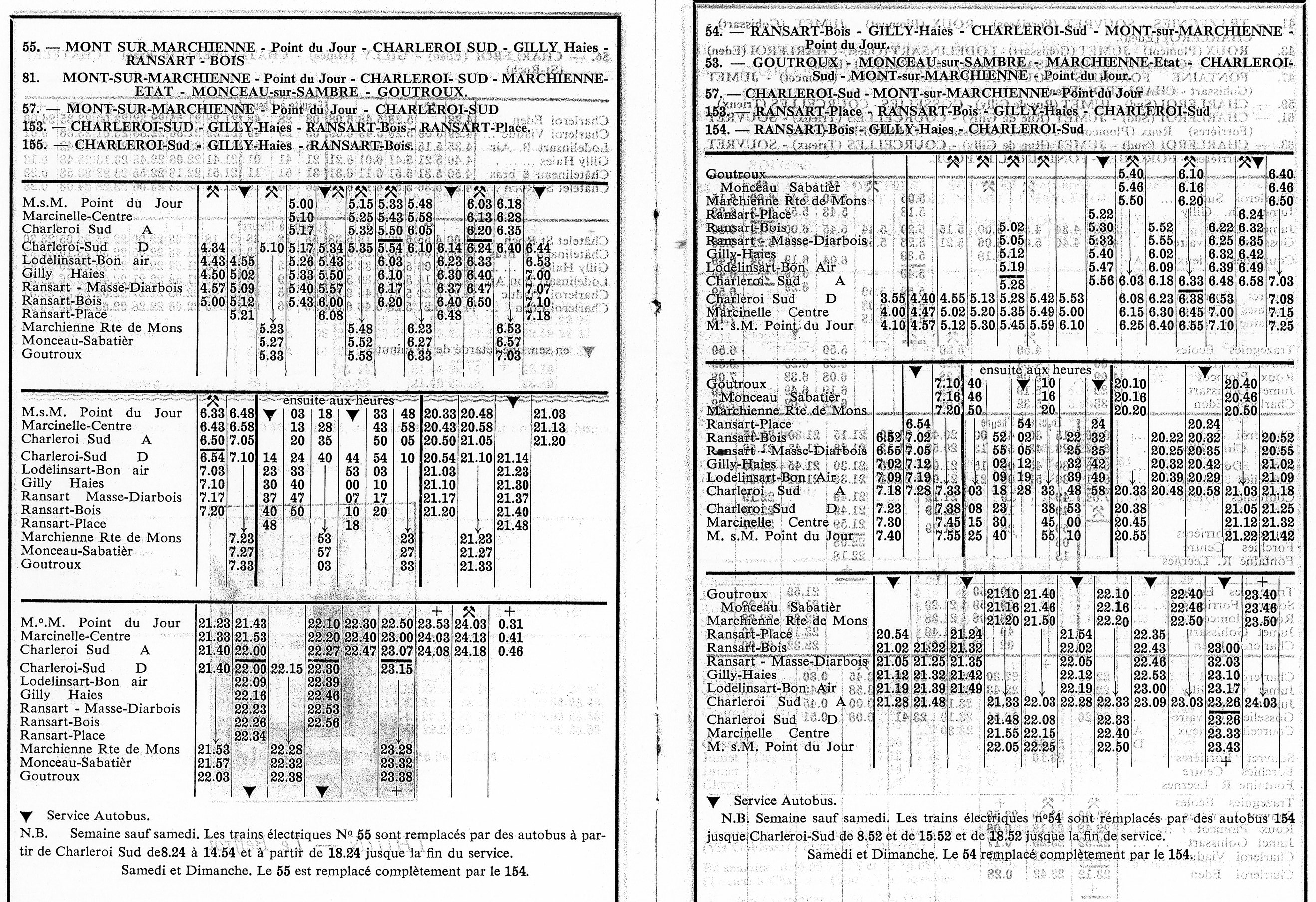 Horaire du 28.05.1961 au 30.09.1961 concernant la fusion des lignes Point du Jour Charleroi et Charleroi Gosselies